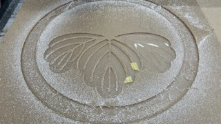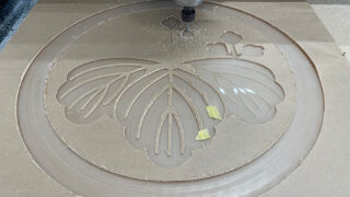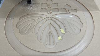 とうとう円の部分の彫刻も終わり、花の部分を彫っています。彫った部分を見ていると家紋の大部分